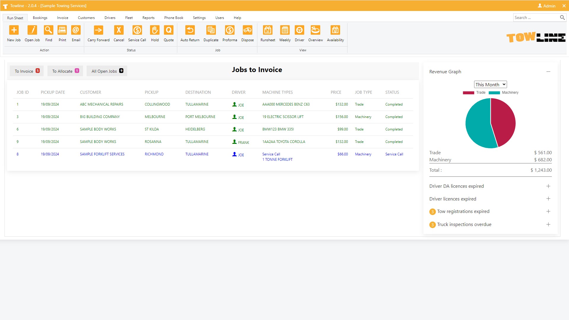 From job entry and dispatch through to fleet management and reporting, Towline does it all.